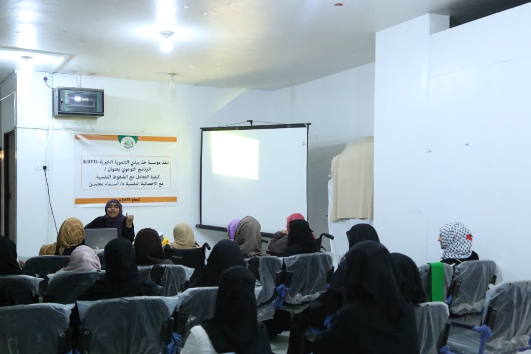 بمناسبة الذكرى الـ16 لتأسيسها نفذت مؤسسة خذ بيدي التنموية الخيرية (KBFD) برنامجاً للدعم النفسي بعنوان "كيفية التعامل مع الضغوط النفسية"، استهدف الطالبات والنساء من ذوات الإعاقة.